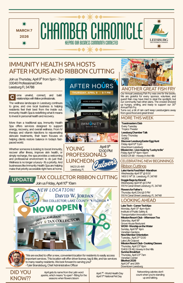 Check in for updates on local business initiatives, community events, and important announcements that impact our vibrant community. Stay connected with the latest news, resources, and opportunities designed to support and promote our local businesses and foster growth in Leesburg.